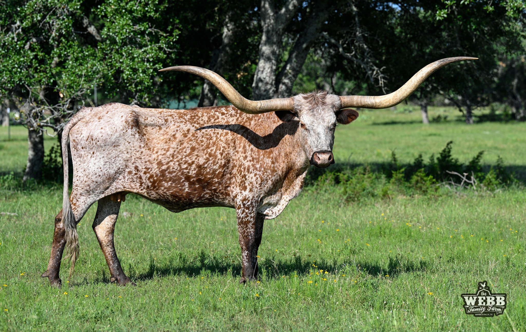 Breathtaking cow with an A+ pedigree! One of the best daughters of Boomerang CP x Tabasco's Lezawe, bringing in longhorn legends, Tabasco, Dixie Hunter, and Classic! SHARITA measured 91.25" TTT on 7/30/2024. We are blessed to own this beautiful and gentle lady!