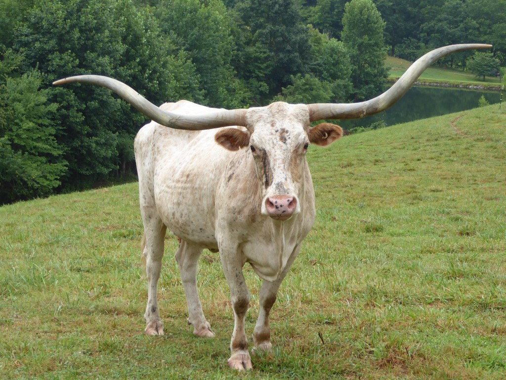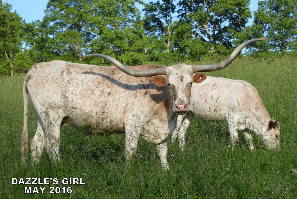 She's a tall cow measuring 80.75" TTT. Her horns are gorgeous. She's still producing big healthy calves every year.